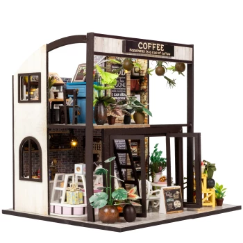 Een sfeervol koffiehuisje met warme kleuren en gezellige hoekjes. De perfecte plek om in miniatuurvorm tot rust te komen met een denkbeeldige cappuccino.